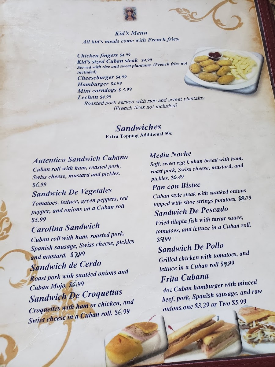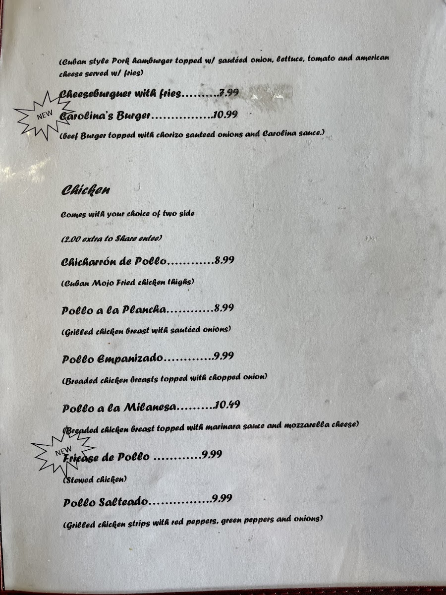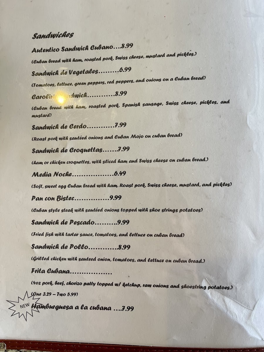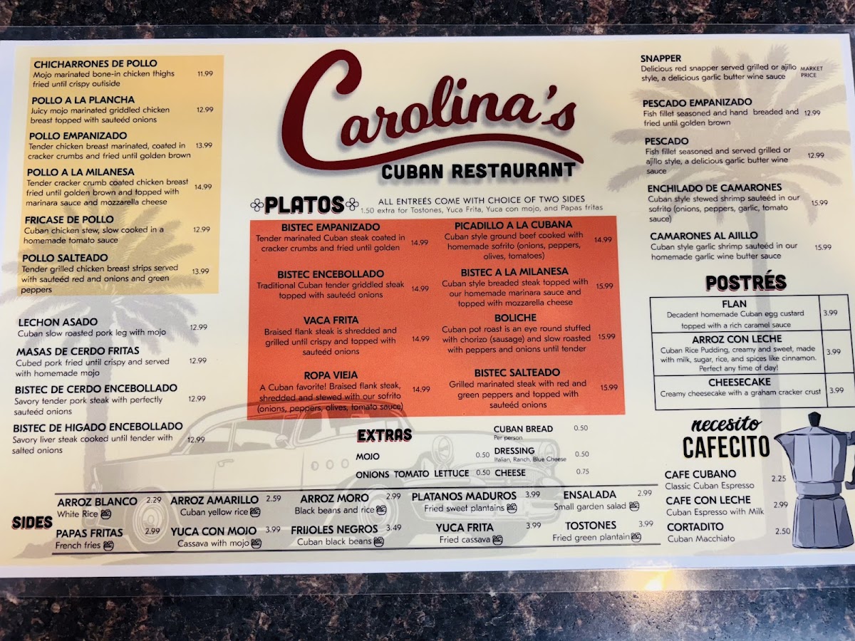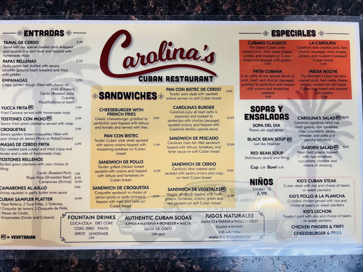 Carolina's Cuban Cafe Menu